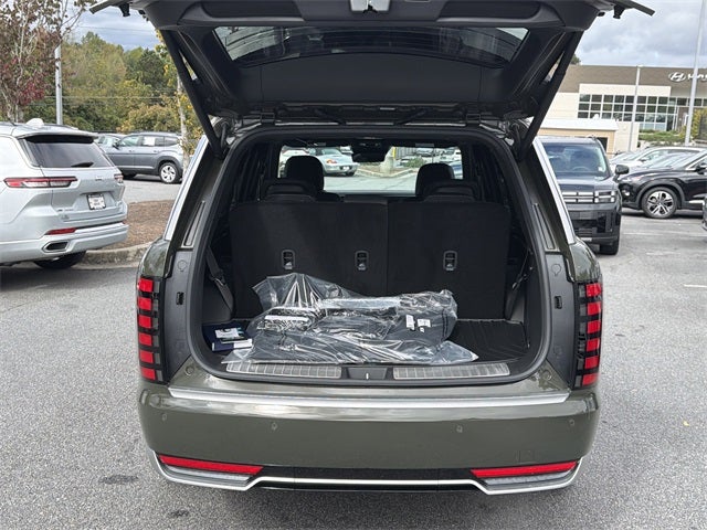 Georgia's #1 Hyundai Dealer! Real Deals Real Fast! That's how we roll! Transparent Pricing Flexible Test Drive Streamlined Purchase 3-Day Worry-Free Exchange Option Group 01, 14 Speakers, 3rd row seats: split-bench, 4-Wheel Disc Brakes, ABS brakes, Air Conditioning, Alloy wheels, AM/FM radio: SiriusXM, Apple CarPlay & Android Auto, Audio memory, Auto High-beam Headlights, Auto-dimming door mirrors, Auto-dimming Rear-View mirror, Auto-leveling suspension, Automatic temperature control, Brake assist, Bumpers: body-color, Cargo Net, Cargo Tray, Carpeted Floor Mats, Compass, Delay-off headlights, Driver door bin, Driver vanity mirror, Dual front impact airbags, Dual front side impact airbags, Electronic Stability Control, Emergency communication system: None, Exterior Parking Camera Rear, First Aid Kit, Four wheel independent suspension, Front anti-roll bar, Front Bucket Seats, Front Center Armrest, Front dual zone A/C, Front reading lights, Fully automatic headlights, Garage door transmitter: HomeLink, Genuine wood console insert, Genuine wood dashboard insert, Heads-Up Display, Heated and Ventilated Front Bucket Seats, Heated door mirrors, Heated front seats, Heated rear seats, Heated steering wheel, HVAC memory, Illuminated entry, Knee airbag, Leather steering wheel, Low tire pressure warning, Memory seat, Mud Guards, Navigation System, Occupant sensing airbag, Outside temperature display, Overhead airbag, Overhead console, Panic alarm, Passenger door bin, Passenger vanity mirror, Power door mirrors, Power driver seat, Power Liftgate, Power moonroof, Power passenger seat, Power steering, Power windows, Premium Nappa Leather Seat Trim, Radio data system, Radio: Infotainment Navigation System, Rain sensing wipers, Rear air conditioning, Rear anti-roll bar, Rear audio controls, Rear reading lights, Rear side impact airbag, Rear window defroster, Rear window wiper, Reclining 3rd row seat, Remote keyless entry, Security system, Speed control, Split folding rear seat, Spoiler, Steering wheel mounted audio controls, Tachometer, Telescoping steering wheel, Tilt steering wheel, Traction control, Trip computer, Turn signal indicator mirrors, Variably intermittent wipers, Ventilated front seats, Ventilated rear seats, and Wheels: 21 x 8.5J Alloy.