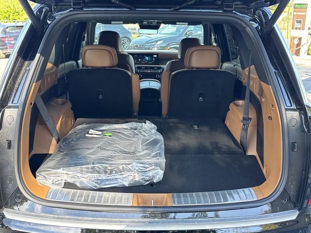 Georgia's #1 Hyundai Dealer! Real Deals Real Fast! That's how we roll! Transparent Pricing Flexible Test Drive Streamlined Purchase 3-Day Worry-Free Exchange Option Group 01, 100W Charging Cable, 14 Speakers, 3rd row seats: split-bench, 4-Wheel Disc Brakes, ABS brakes, Air Conditioning, Alloy wheels, AM/FM radio: SiriusXM, Apple CarPlay & Android Auto, Audio memory, Auto High-beam Headlights, Auto-dimming door mirrors, Auto-dimming Rear-View mirror, Auto-leveling suspension, Automatic temperature control, Brake assist, Bumpers: body-color, Cargo Tray, Carpeted Floor Mats, Compass, Cross Rails, Delay-off headlights, Driver door bin, Driver vanity mirror, Dual front impact airbags, Dual front side impact airbags, Electronic Stability Control, Emergency communication system: None, Exterior Parking Camera Rear, First Aid Kit, Four wheel independent suspension, Front anti-roll bar, Front Bucket Seats, Front Center Armrest, Front dual zone A/C, Front reading lights, Fully automatic headlights, Garage door transmitter: HomeLink, Genuine wood console insert, Genuine wood dashboard insert, Heads-Up Display, Heated and Ventilated Front Bucket Seats, Heated door mirrors, Heated front seats, Heated rear seats, Heated steering wheel, HVAC memory, Illuminated entry, Knee airbag, Leather steering wheel, Low tire pressure warning, Memory seat, Navigation System, Occupant sensing airbag, Outside temperature display, Overhead airbag, Overhead console, Panic alarm, Passenger door bin, Passenger vanity mirror, Power door mirrors, Power driver seat, Power Liftgate, Power moonroof, Power passenger seat, Power steering, Power windows, Premium Nappa Leather Seat Trim, Radio data system, Radio: Infotainment Navigation System, Rain sensing wipers, Rear air conditioning, Rear anti-roll bar, Rear audio controls, Rear reading lights, Rear side impact airbag, Rear window defroster, Rear window wiper, Reclining 3rd row seat, Remote keyless entry, Security system, Speed control, Split folding rear seat, Spoiler, Steering wheel mounted audio controls, Tachometer, Telescoping steering wheel, Tilt steering wheel, Traction control, Trip computer, Turn signal indicator mirrors, Variably intermittent wipers, Ventilated front seats, Ventilated rear seats, and Wheels: 21 x 8.5J Alloy.