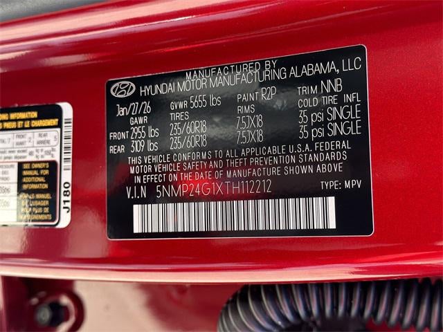 Georgia's #1 Hyundai Dealer! Real Deals Real Fast! That's how we roll! Transparent Pricing Flexible Test Drive Streamlined Purchase 3-Day Worry-Free Exchange Option Group 01, 18 x 7.5J Alloy Wheels, 3rd row seats: bench, 4-Wheel Disc Brakes, 6 Speakers, ABS brakes, Air Conditioning, Alloy wheels, AM/FM radio: SiriusXM, Apple CarPlay & Android Auto, Auto High-beam Headlights, Automatic temperature control, Brake assist, Bumpers: body-color, Cargo Net, Cargo Organizer, Cargo Tray, Carpeted Floor Mats, Delay-off headlights, Driver door bin, Driver vanity mirror, Dual front impact airbags, Dual front side impact airbags, Electronic Stability Control, Emergency communication system, Exterior Parking Camera Rear, First Aid Kit, Four wheel independent suspension, Front anti-roll bar, Front Bucket Seats, Front Center Armrest, Front dual zone A/C, Front reading lights, Fully automatic headlights, H-Tex Leatherette Seat Trim, Heated door mirrors, Heated Front Bucket Seats, Heated front seats, Illuminated entry, Knee airbag, Leather steering wheel, Low tire pressure warning, Occupant sensing airbag, Outside temperature display, Overhead airbag, Overhead console, Panic alarm, Passenger door bin, Passenger vanity mirror, Power door mirrors, Power driver seat, Power Liftgate, Power steering, Power windows, Radio: AM/FM/HD Display Audio, Rear anti-roll bar, Rear seat center armrest, Rear side impact airbag, Rear window defroster, Rear window wiper, Remote keyless entry, Roof Rack Crossbars, Security system, Speed control, Speed-sensing steering, Split folding rear seat, Spoiler, Steering wheel mounted audio controls, Tachometer, Telescoping steering wheel, Tilt steering wheel, Traction control, Trip computer, Turn signal indicator mirrors, and Variably intermittent wipers.