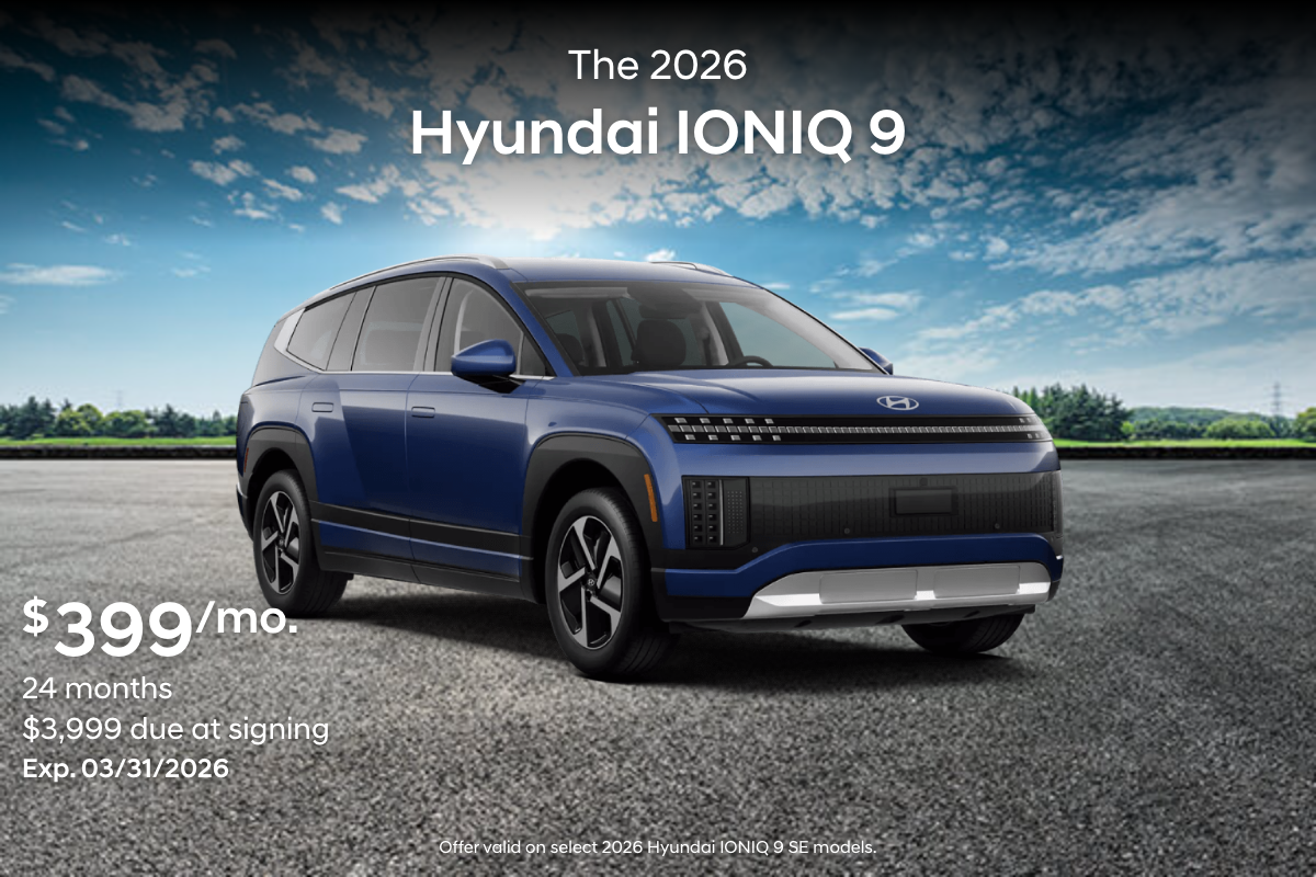 See your participating Hyundai dealer for more details on these special offers. Special limited time annual percentage rate (APR) available to qualified buyers on approved credit through Hyundai Motor Finance. May not be combined with other special offers except where specified. Only a limited number of customers will qualify for advertised APR or lease offer. Not all buyer will qualify. Finance contract or lease agreement must be signed no later than 3-31-2026