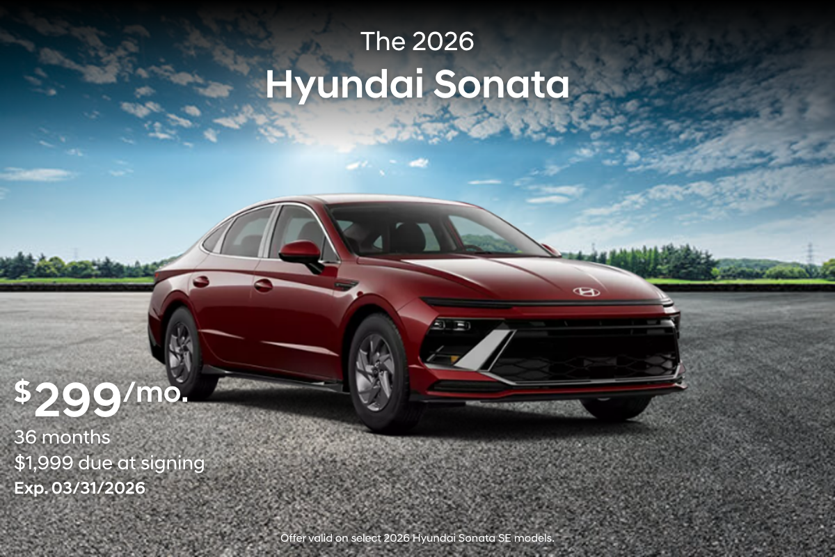 See your participating Hyundai dealer for more details on these special offers. Special limited time annual percentage rate (APR) available to qualified buyers on approved credit through Hyundai Motor Finance. May not be combined with other special offers except where specified. Only a limited number of customers will qualify for advertised APR or lease offer. Not all buyer will qualify. Finance contract or lease agreement must be signed no later than 3-31-2026